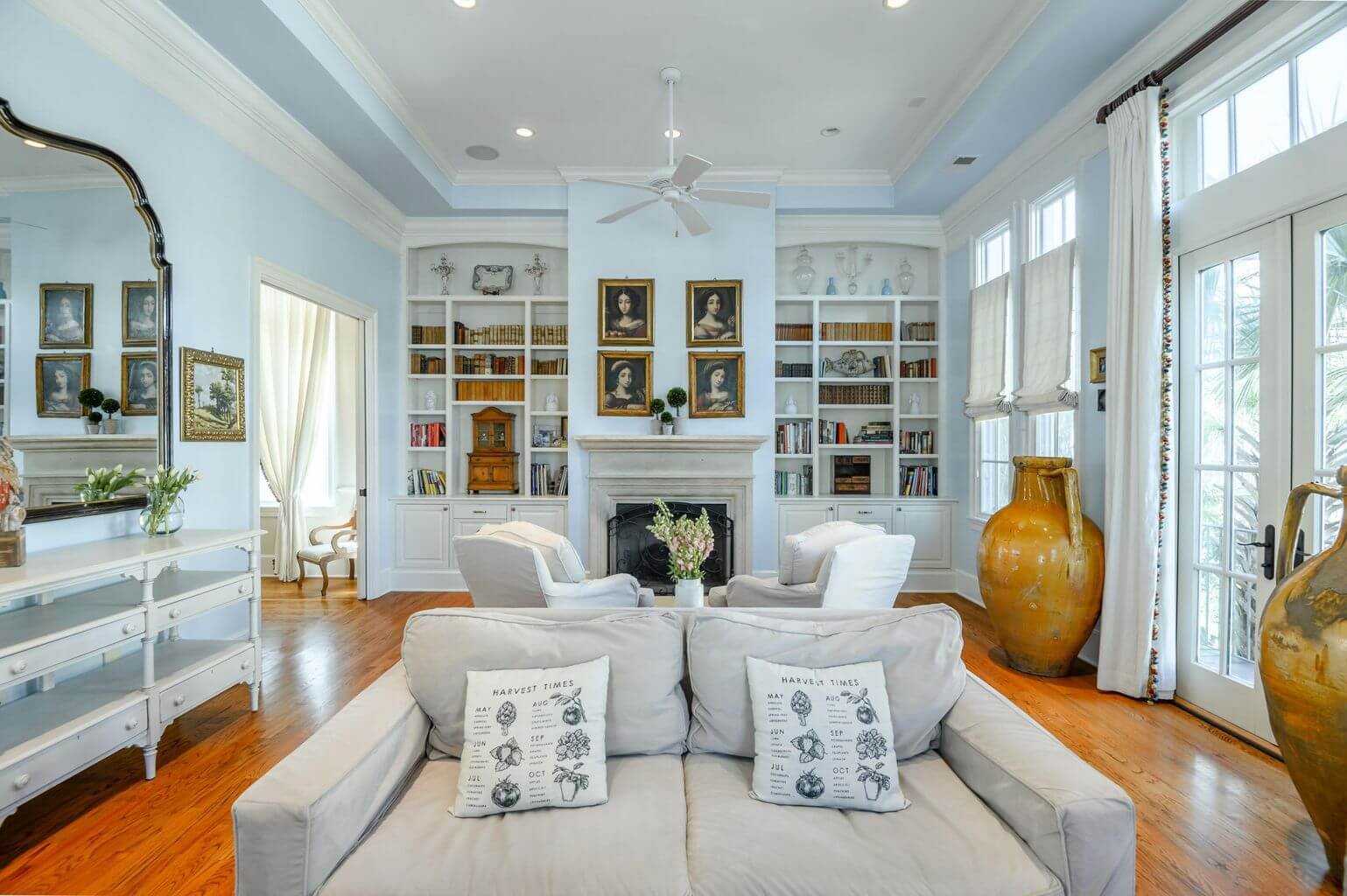 The open and airy Mediterranean elegance of this 4BDR/ 3.2BA home is evident the second you enter the foyer and experience the showpiece spiraling staircase. And with a total of 4,098 sq ft, there is more than enough space to accommodate, with both large living room/flex spaces and thoughtful pockets of privacy throughout the home. The main level features 13 foot ceilings, and gorgeous over-sized windows throughout. Relax in your living room, with double pella-clad french doors overlooking the canal. Your fireplace in the living room is nestled between floor to ceiling built-in bookshelves. To say this room is regal is an understatement. You have the option to formally entertain in your separate dining room, eat-in kitchen, rooftop terrace, or private courtyard. Possibilities are endless and, true to the mediterranean culture, dining in will never disappoint. The kitchen has been upgraded, and opens up to your charming courtyard. Between the contemporary beamed ceilings, kitchen island, granite countertops and stainless steel appliances; gathering in the kitchen is inevitable. Upstairs, you have a private master, with en-suite bathroom and terrace. Between the 12 foot ceilings, and panoramic views of the lakes and canal, you won't ever want to leave your bed. The master features gorgeous double french doors, his and her closets, garden tub, double sinks, and a ton of natural light. On the other side of the home, opposite to the master, you have two more guest bedrooms. The coveted I'On neighborhood has tree lined streets, miles of walking trails, 2-lakes, boat ramp and the list goes on.