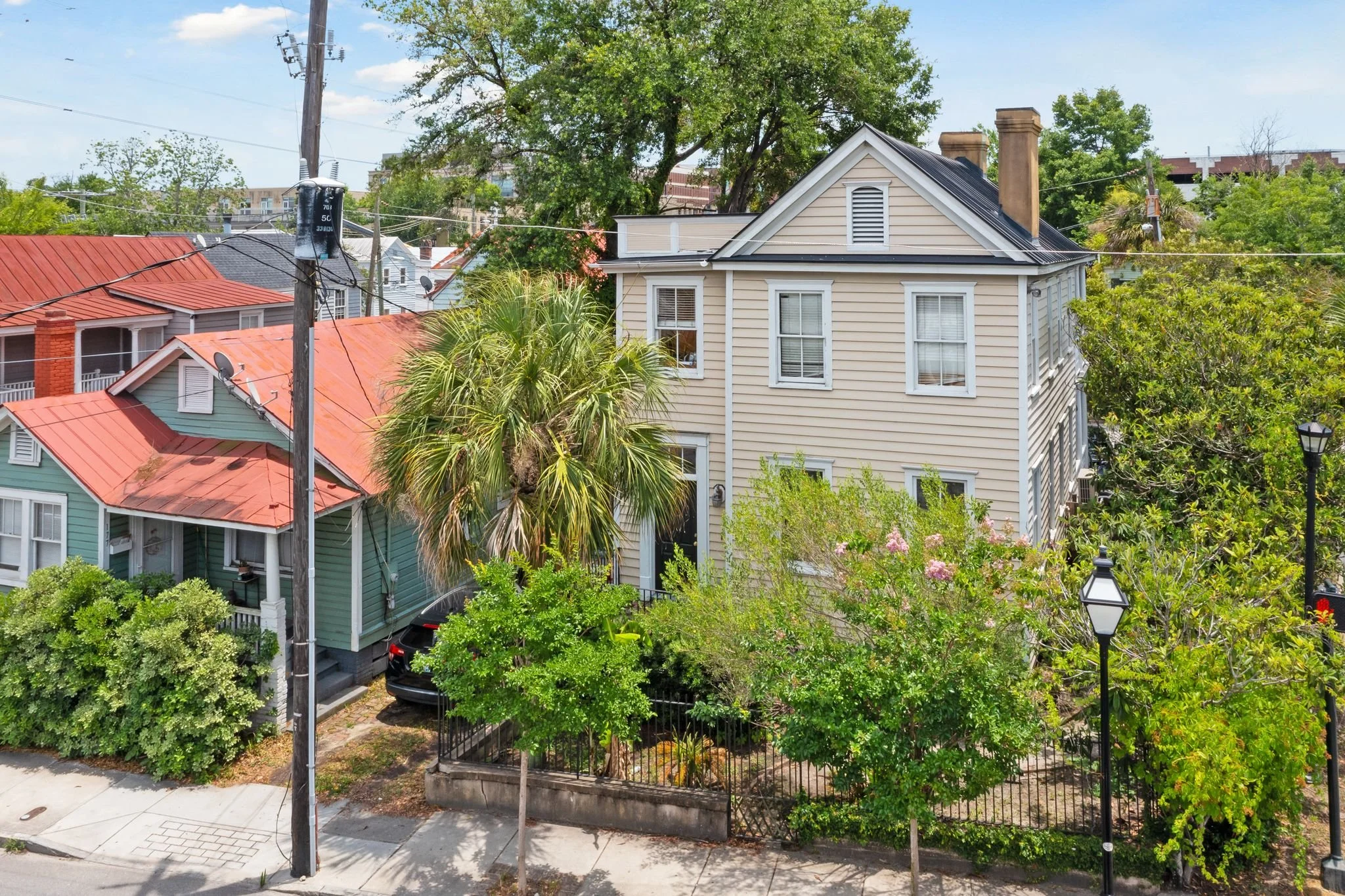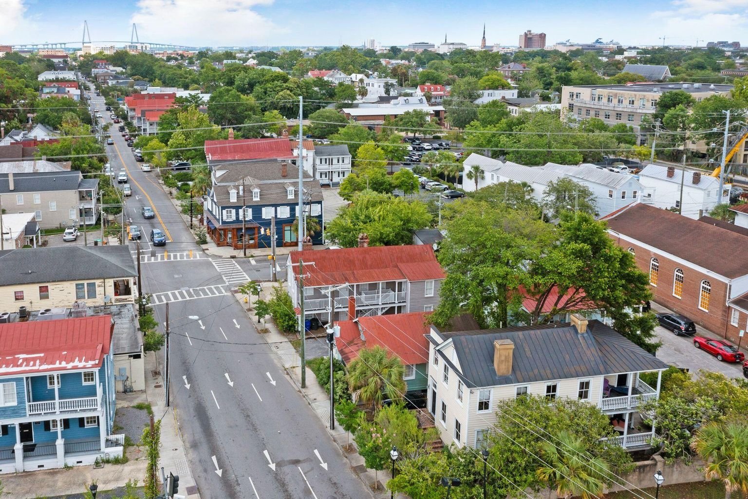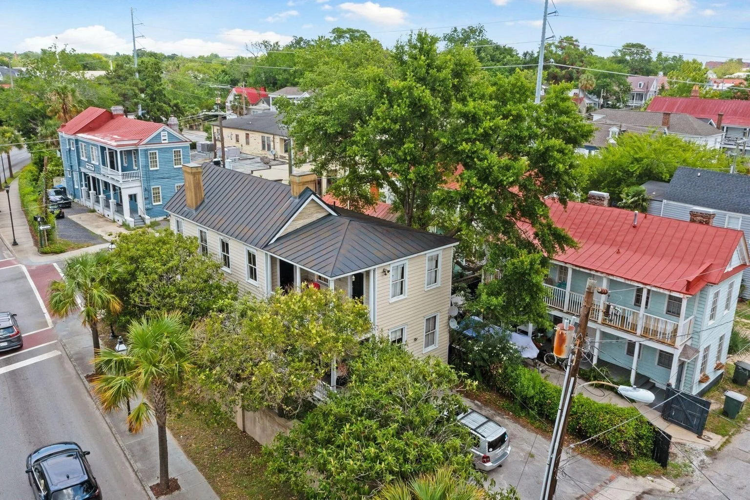 Zoned general business, this property is the perfect place for either commercial or residential uses. A legal duplex with separate meters for each floor, the property is currently rented residentially and boasts a layout that lends itself to either use. Entering the alley access of the property through President Place offers 6 off-street parking spaces (three wide, double stacked) and loads of privacy. This home is located ONE BLOCK north of MUSC, bordering the cross-town for the perfect amount of signage visibility for any commercial component. This home was originally constructed in 1890 but taken down to the studs and renovated in 2002. At that time, the owners added high-end details such as a terne metal roof, custom windows with pressure treated pine, Spanish cedar sashes and treated lumber finishes throughout. The historic fireplaces have been sealed up and are not functional but they, along with the heart pine flooring, add the perfect amount of balance between the old charm and the new finishes!