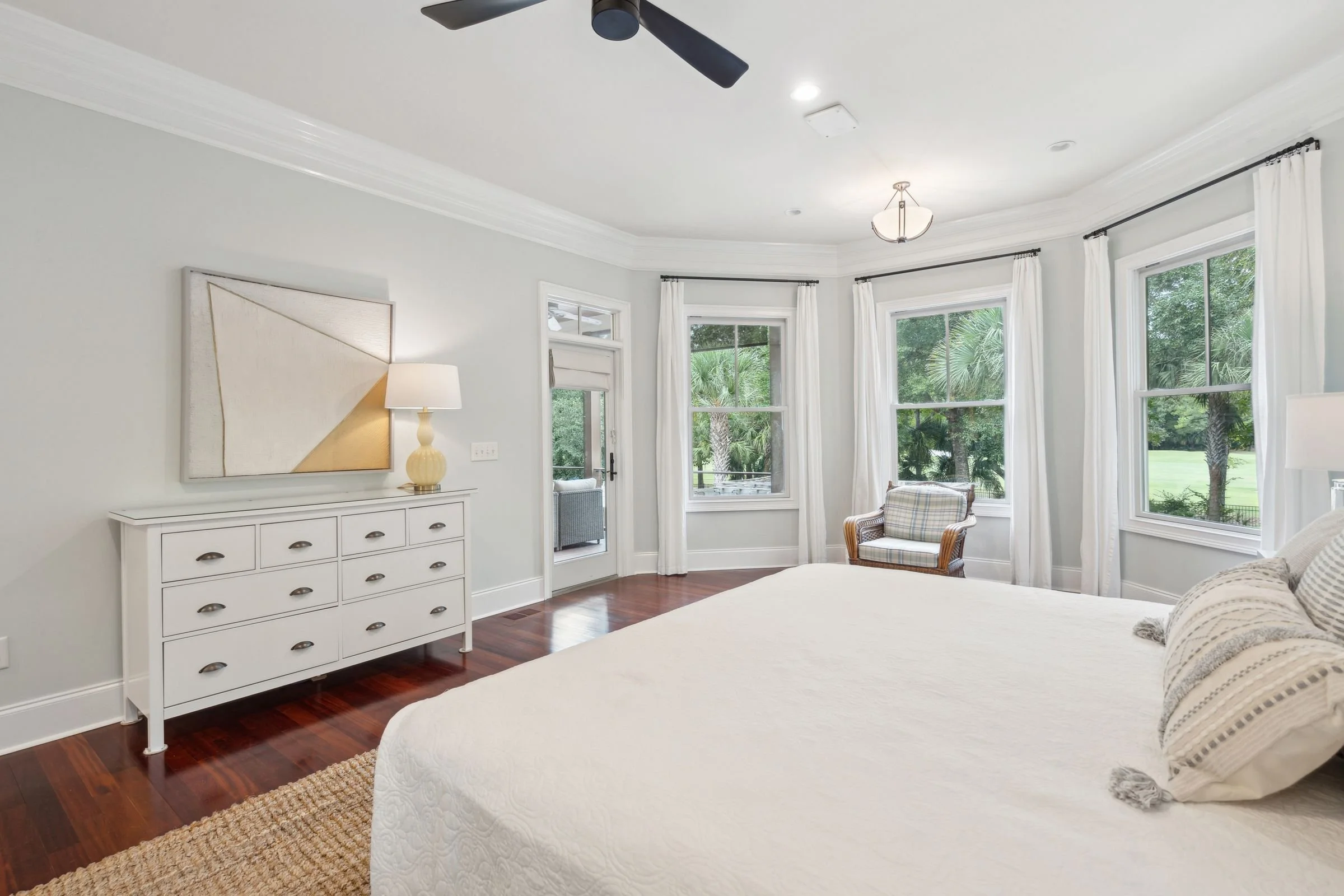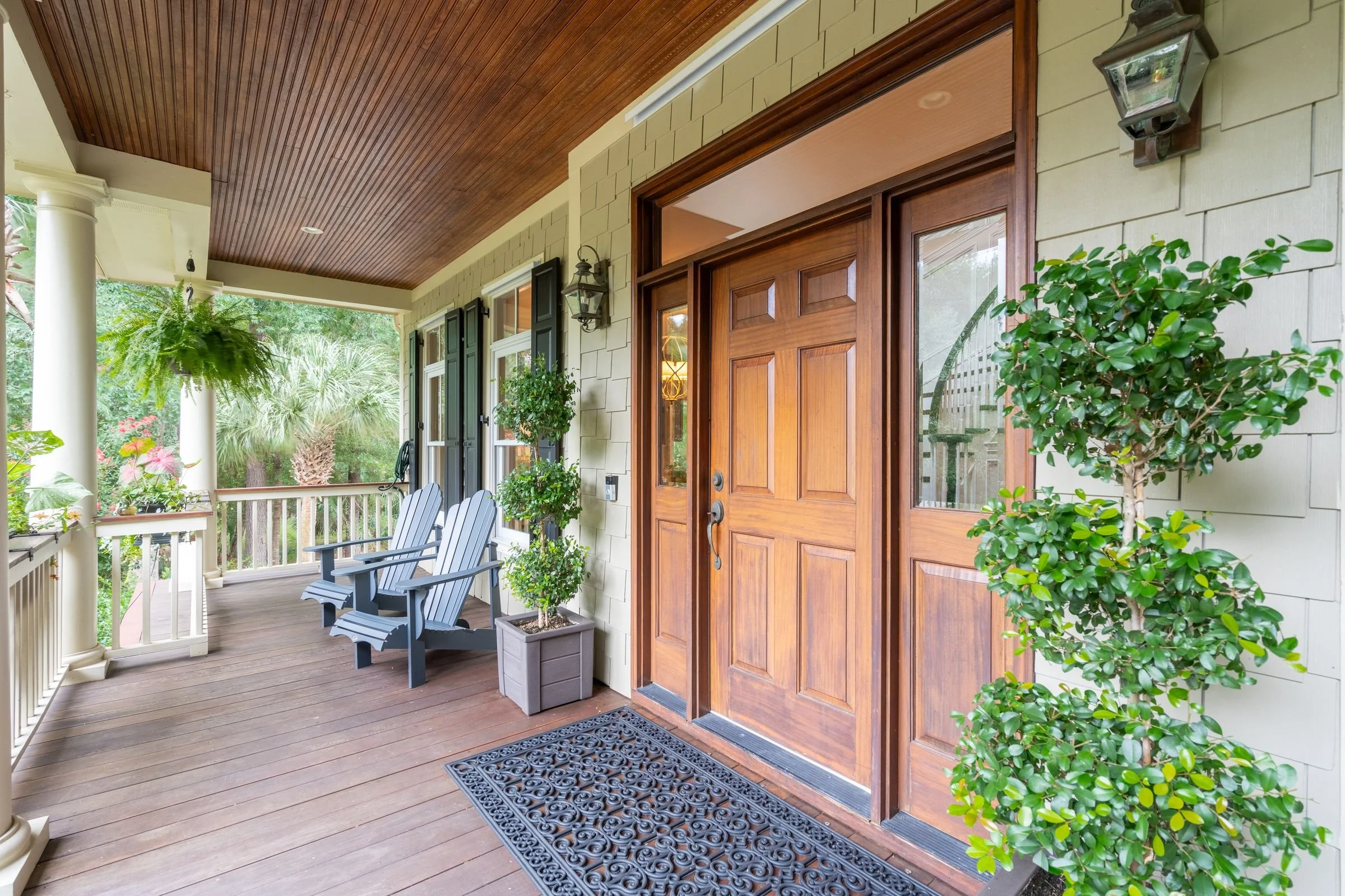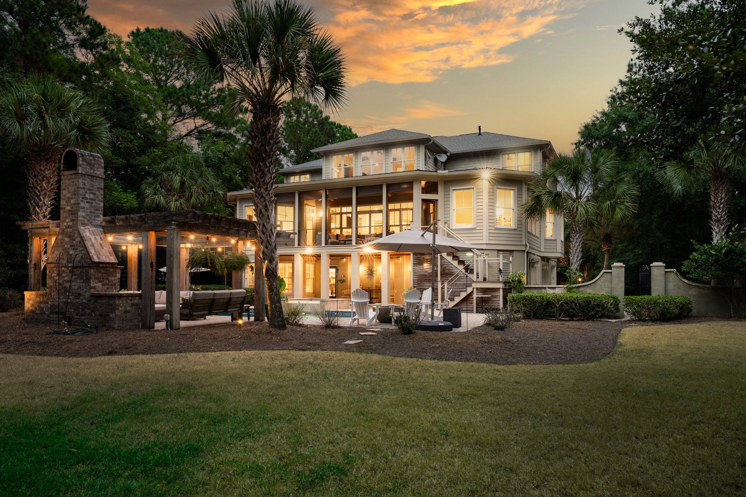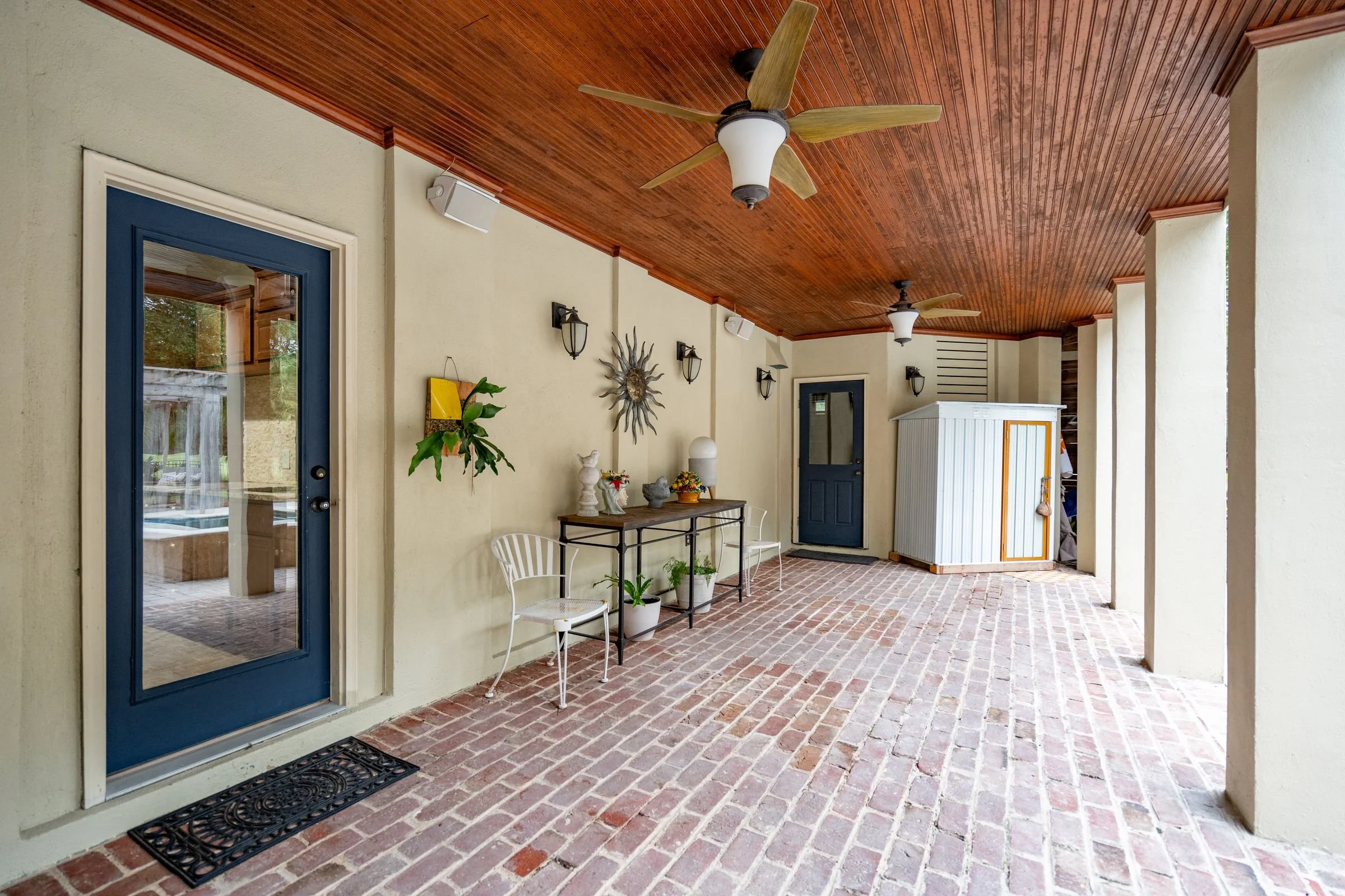 The outdoor living spaces of this home made for the Lowcountry lifestyle. The backyard features a sparkling heated pool and a charming seating area beneath a pergola with a brick wood-burning fireplace, adding a touch of rustic elegance. Wide porches grace both the front and rear of the home, providing ample space to savor the outdoors and take in the beautiful surroundings.