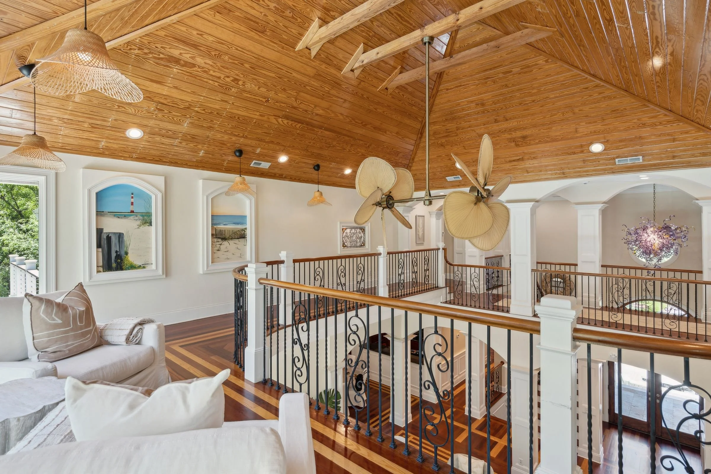This floor also includes three spacious bedrooms, an office, and multiple porches that invite you to unwind in the Lowcountry breeze.Upstairs, you'll find a stylish loft, an additional bedroom, and a spacious primary suite that offers a peaceful escape with its own private perch above the trees.