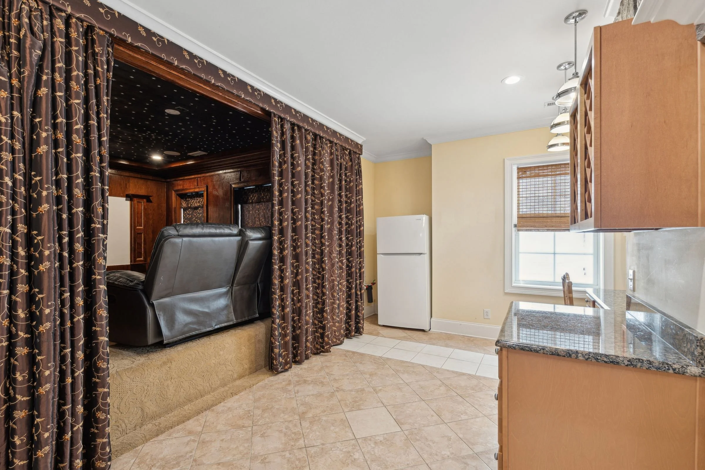 Downstairs, the finished ground level adds incredible flexibility with a movie room, bonus space, full bathroom, and an extra bedroom or office, ideal for guests, hobbies, or a private home office setup.