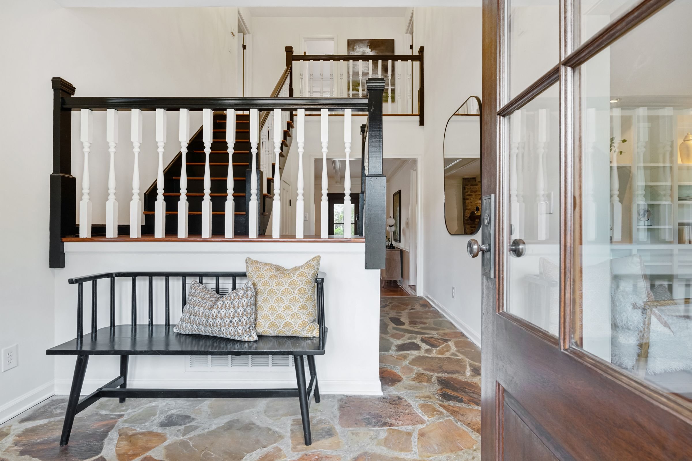 Adjacent to the kitchen is the sunken living room, a unique and inviting space that centers around a charming fireplaceperfect for relaxing with family or hosting gatherings. A convenient powder room and well-appointed mudroom add to the home's practicality and ease of living.