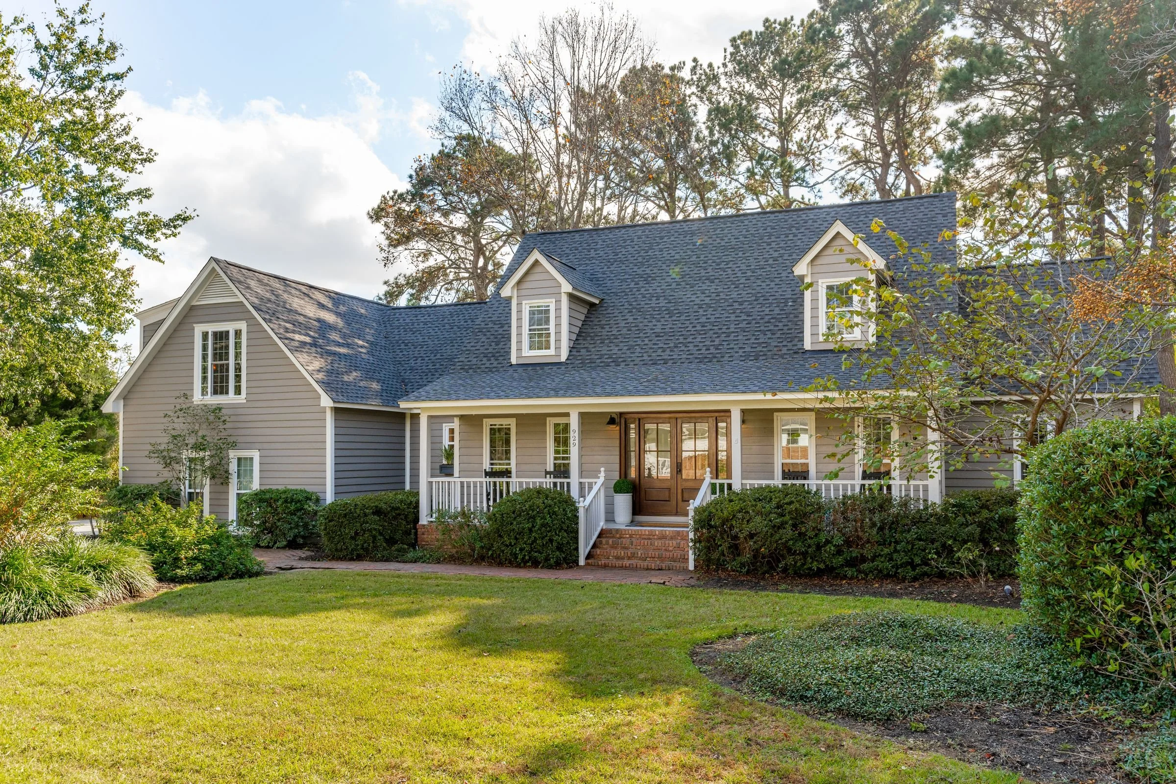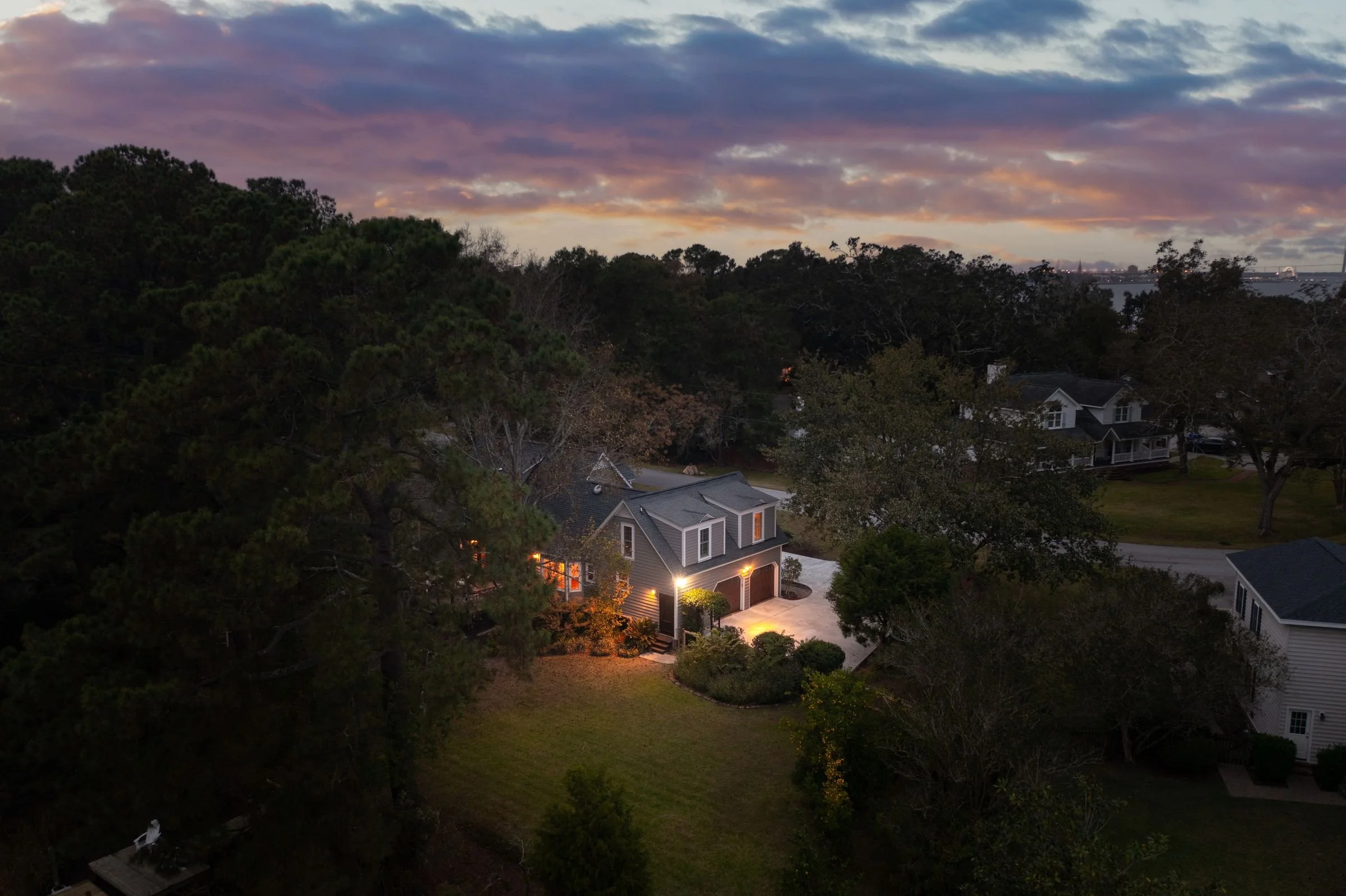 The outdoor living spaces of 935 Paul Revere Drive are just as spectacular as the interiors. The front porch offers an opportunity to relax and take in the happenings of neighborhood. The expansive back deck is ideal for relaxing while enjoying the views of the marsh, or for entertaining family and friends. The backyard also has multiple fruit trees for snacking, jams or a cocktail. The private dock gives you direct access to the water for kayaking, fishing, or simply appreciating the surroundings.