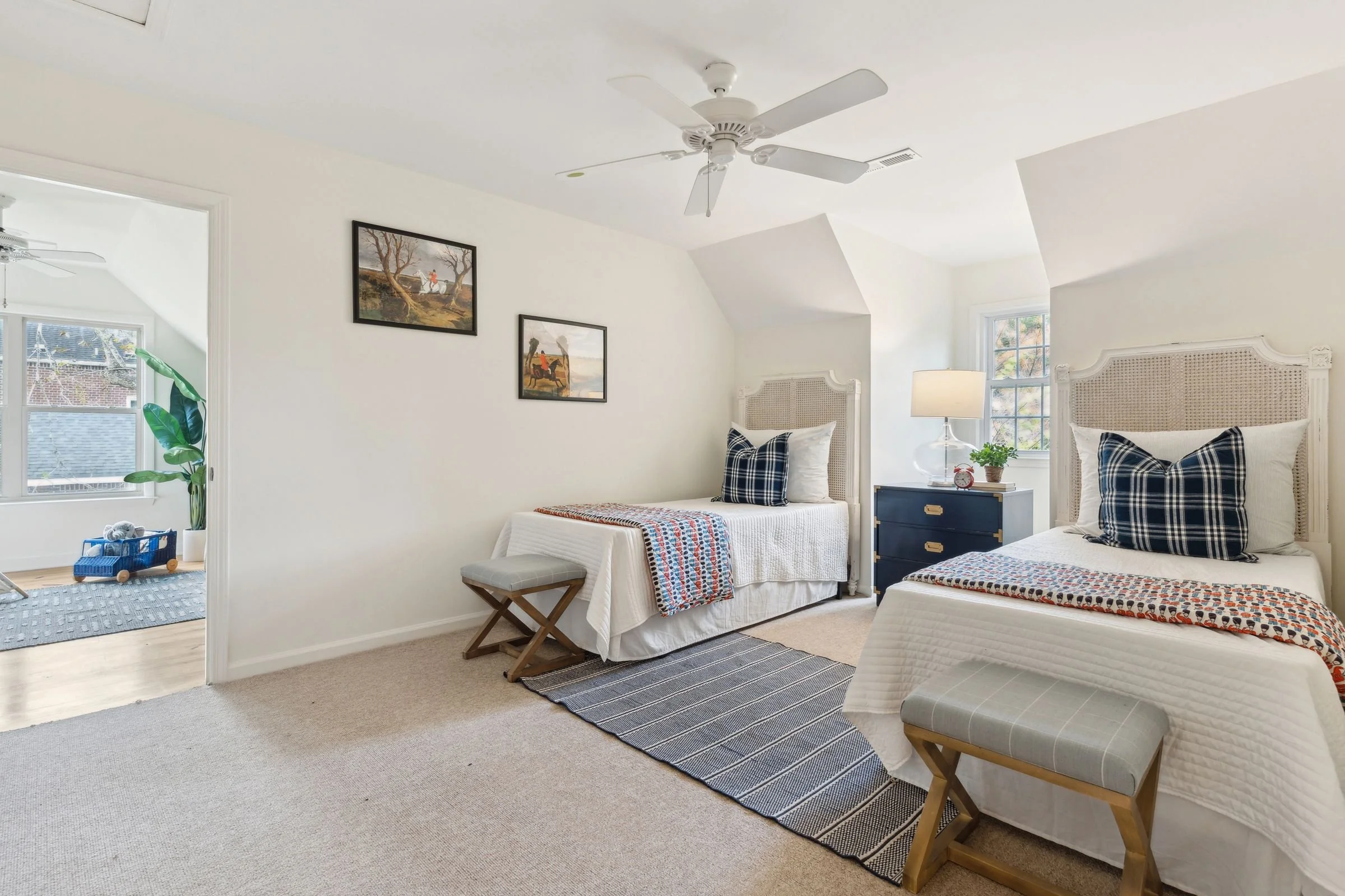 Upstairs, you'll find two generously sized bedrooms that share an updated bathroom. One of the bedrooms features an additional room off of it, which could serve as a private office, playroom, or creative spaceideal for whatever your family needs.